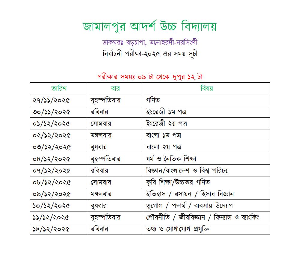 নির্বাচনী পরীক্ষার রুটিন -২০২৫